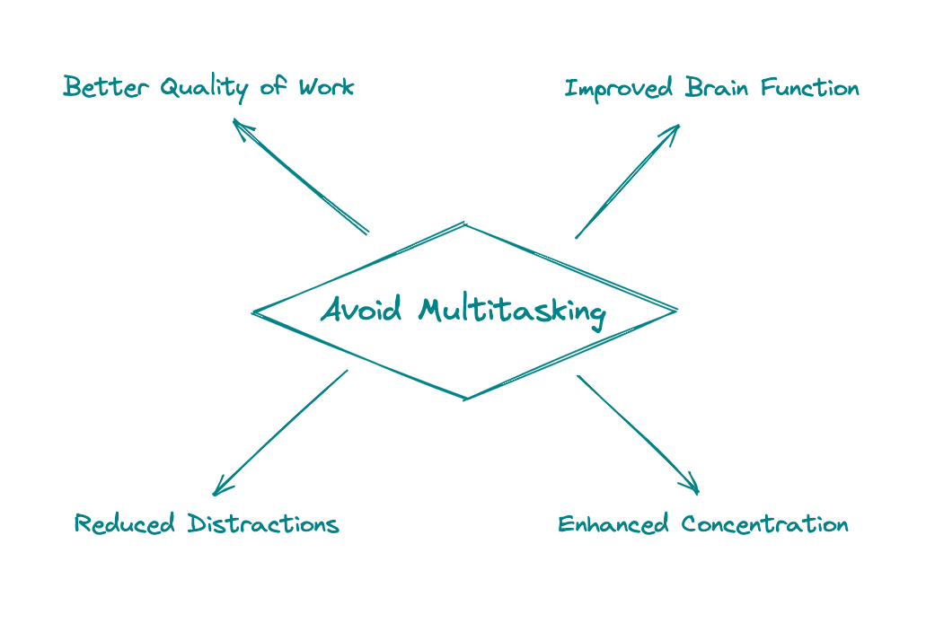 Multitasking often reduces efficiency and increases errors. Focus on one task at a time to ensure higher quality work and better use of your time.