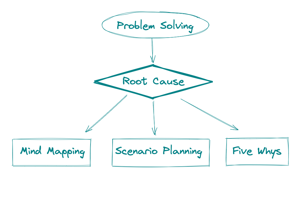 - Five whys: To get to the root cause of a problem, ask “why” repeatedly until you uncover the underlying issue.